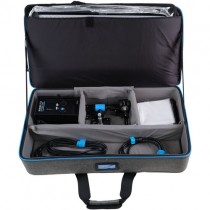 El delgado estuche de transporte acolchado tiene espacio para todos los accesorios incluidos, como la caja de luz de apertura rápida, la rejilla, los difusores de 1.5 y 2.5 pasos (que también se configuran y descomponen en segundos). El estuche no le pesará ni consumirá espacio innecesario en el transporte o el almacenamiento.
