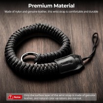 Ajuste Elástico de Soporte: La longitud total de la muñeca de la correa de la cámara es de 41 cm/16,1 pulgadas. El anillo de metal de aleación de aluminio permite un ajuste flexible de la tensión para adaptarse a diferentes tamaños de muñeca.