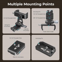 Múltiples puntos de montaje: Orificios roscados de 1/4“-20 y 3/8”-16 para accesorios adicionales.