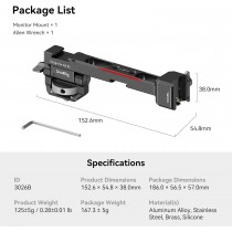 Para DJI RS 2 / RSC 2 / RS 3 / RS 3 Pro / RS 3 mini / RS 4 mini / RS 4 / RS 4 Pro: El soporte para monitor SmallRig 3026B está especialmente diseñado el mini cardán para DJI RS 2 / RSC 2 / RS 3 / RS 3 Pro / RS 3 mini / RS 4 / RS 4 Pro. Este soporte está diseñado para agregar accesorios en ambos lados del estabilizador, como un monitor de cámara, luz LED, receptor de sonido, dispositivo inalámbrico, cámara de acción, etc.