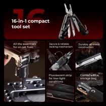 Kit de herramientas EDC todo en uno 16 en 1: esta multiherramienta compacta integra 16 funciones esenciales, incluidas llaves Allen (H2, H2.5, H3, H4), destornilladores planos/Phillips, alicates, cuchillo, tijeras, archivo, abrelatas de botellas/latas y una regla de doble escala.