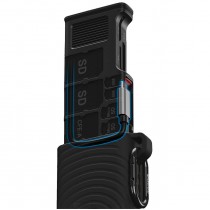 Slots internos: 2× SD, 2× Micro SD, 2× SIM, 1× CFexpress A, 1× CFexpress B.