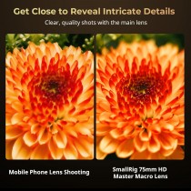 Lente macro profesional para videografía: la lente macro SmallRig de 2.953 in (montura T) 4588 está diseñada para mejorar tu experiencia de fotografía móvil. Funciona perfectamente con la cámara principal de tu teléfono para ofrecer impresionantes fotos macro. Esta lente ofrece una reproducción mejorada del color y una claridad de imagen superior, superando a la de las lentes estándar.