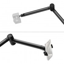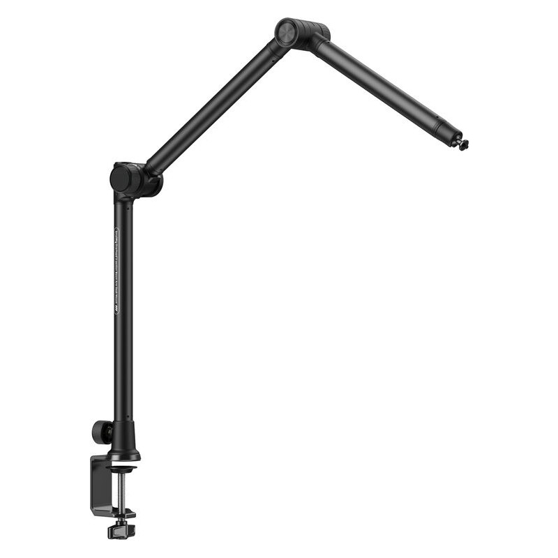 El SmallRig 4324 es un innovador soporte de brazo articulado diseñado específicamente para fotografía cenital y transmisiones en vivo desde tu escritorio. Su construcción robusta incorpora un brazo de tres secciones conectado mediante juntas con amortiguación hidráulica, lo que permite un posicionamiento suspendido en cualquier punto con total seguridad. Esta característica esencial previene aflojamientos repentinos del equipo, a la vez que facilita un ajuste preciso de los ángulos de disparo, asegurando que tus tomas sean siempre perfectas.