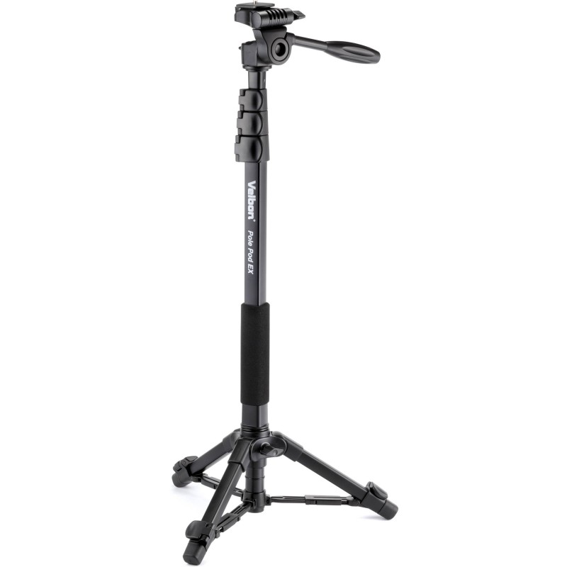Para grabar o realizar fotografías en espacios reducidos y con mucha multitud, un trípode convencional es imposible. Velbon Pole Pod EX es una solución para tus trabajos y para las ocasiones que necesitas colocar una fijación en lugares donde el espacio es muy pequeño. Este monopie puede alcanzar la altura de 187 cm ayudado de un trípode pequeño para darle más estabilidad. Puede soportar hasta 1,5kg de carga máxima. Se despliega con pestañas, de forma cómoda y rápida. Las patas se pueden desplazar, conseguir más superficie en los casos de mayor extensión del monopie. Ambos productos suman poco peso, y eso les hace una opción perfecta para el transporte. Fabricado en alimuminio, muy resistente y ligero.